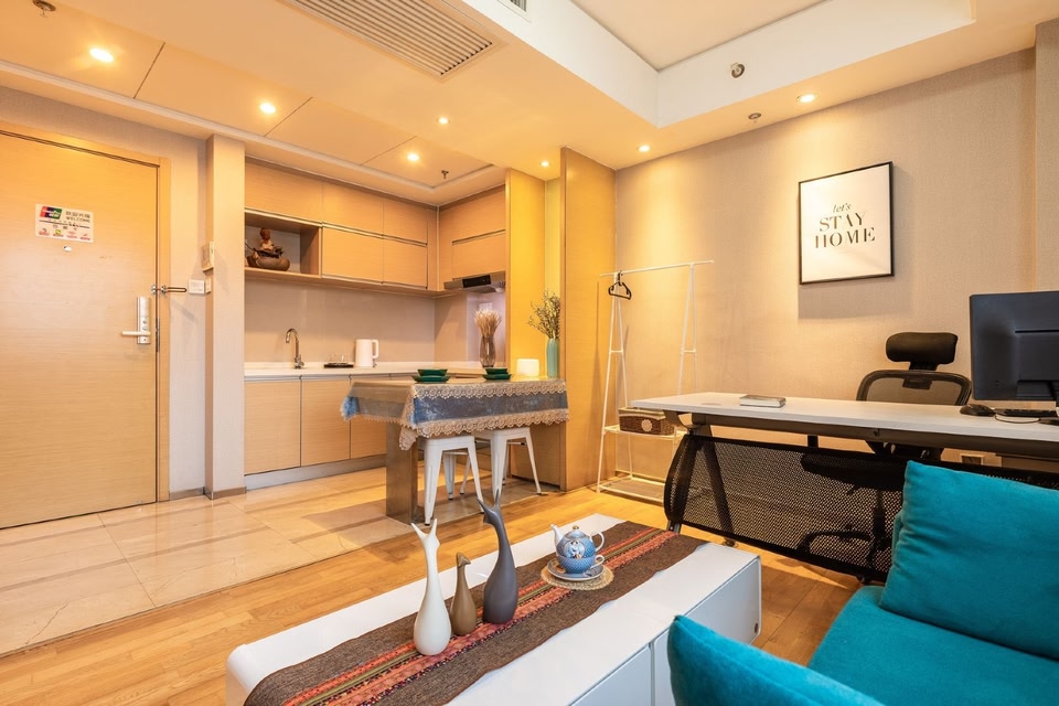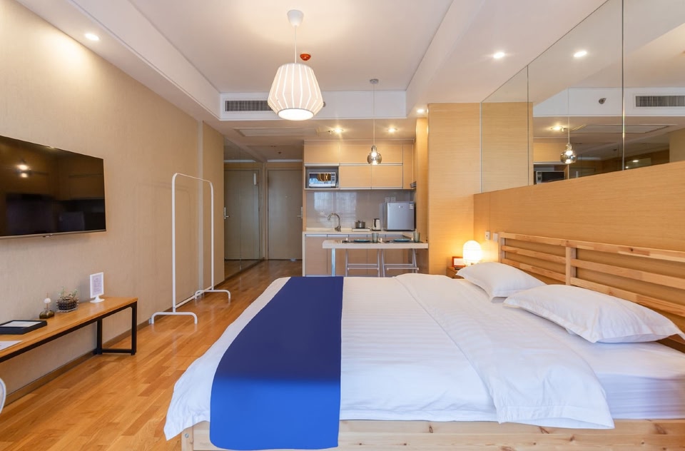 Dear guest, the hotel is located at Exit C of Yongningmen Subway, turn right when you get out of the subway and walk for about 1 minute. Located on floors 6-15 of Pearl River Times Square, the front desk is on the 6th floor and turns right when you get out of the elevator. The 1st to 5th floors are Hopson Mall! Parking can be parked at the B2-A area of Heshenghui directly to the guest room! There is a fee for parking! There are many shopping malls nearby, such as Heshenghui, Skp, Wangfujing downstairs, and the transportation is convenient. Each room is equipped with a washing machine, free washing powder, refrigerator, and microwave oven. Very convenient, self-service laundry. Takeaway is not afraid of cold. The front desk is equipped with dryers, ironing machines, and self-service ironing and drying. Suitable for business trips and short stays. We will serve you wholeheartedly.