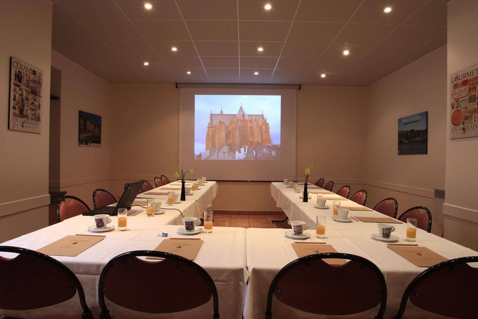 Mercure Grand Hotel Metz Centre Cathédrale si trova nel centro di Metz, a 5 minuti a piedi da Cattedrale di Metz e 11 minuti da Porte des Allemands (Porta). Questo hotel si trova a 3 km da Centro Pompidou-Metz e 16,4 km da Walygator Parc. Il divertimento è assicurato grazie ad un'ampia gamma di servizi ricreativi, che includono una palestra aperta giorno e notte e un servizio di noleggio biciclette. Presso un hotel è disponibile il servizio in camera con orario limitato. La colazione a buffet è servita nei giorni feriali dalle ore 06:30 alle ore 10:00 e nel fine settimana dalle ore 06:30 alle ore 11:00, dietro pagamento di un supplemento. Potrai usufruire di check-in veloce, una reception aperta 24 ore su 24 e personale poliglotta. Rilassati in una delle 60 camere della struttura, completa di minibar con snack e bevande gratuite. Il Wi-Fi gratuito ti consente di restare in contatto con il mondo. I bagni dispongono di asciugacapelli e spazzolini e dentifricio. I comfort includono telefoni, casseforti e accessori per la preparazione di caffè/tè.