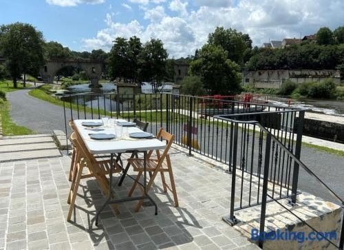 Dotato di terrazza, La Fourmondière supérieure, maison éclusière è un alloggio a Montflours che mette a disposizione la vista sul fiume e il WiFi gratuito.