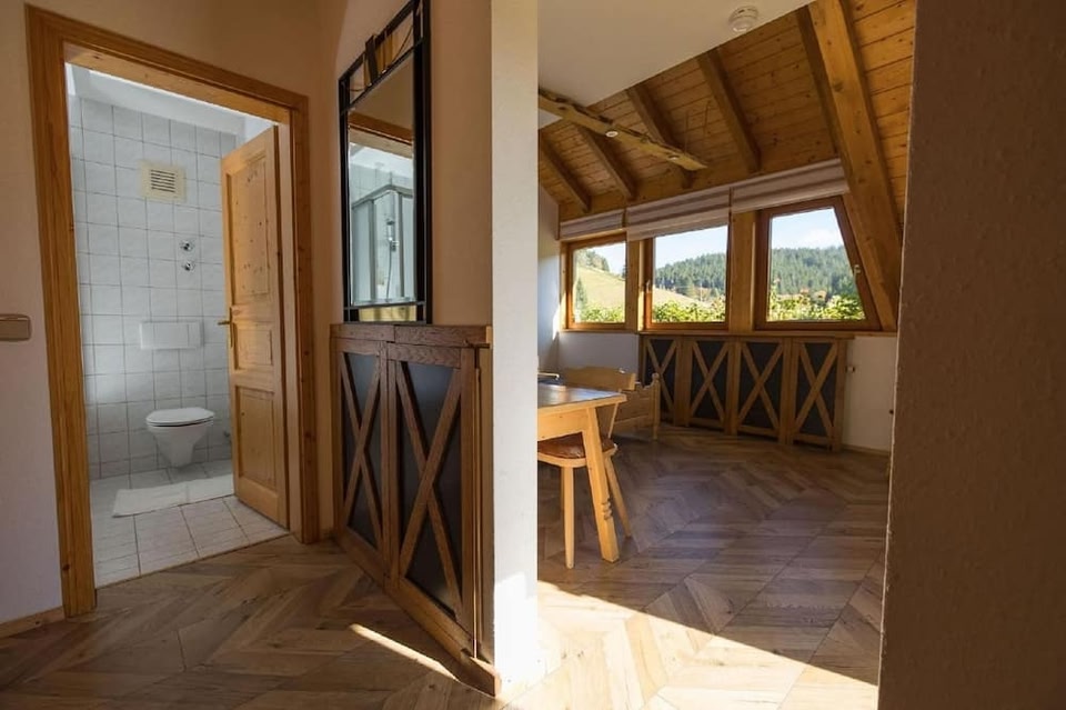 Kräuter Chalet di Furtwangen si trova a 1 minuti di auto da Parco Naturale della Foresta Nera Meridionale e 5 minuti da Museo Tedesco degli Orologi. Questo hotel si trova a 29,7 km da Badeparadies Schwarzwald e 7,1 km da Distilleria di frutta nella Fattoria della Foresta Nera. Avrai a disposizione una terrazza da dove ammirare il paesaggio, nonché una sala ricevimenti. Scopri il menù di Kräuter-Chalet, piacevole ristorante che offre cucina regionale e include un bar/lounge. Troverai un'ampia scelta di pietanze anche al bar/caffetteria in loco. La colazione a buffet è disponibile a pagamento tutti i giorni dalle ore 07:00 alle ore 09:00. Potrai usufruire di deposito bagagli e un angolo caffè nelle aree comuni. Il un parcheggio gratuito è disponibile in loco. Soggiorna in una delle 20 camere della struttura, complete di TV a schermo piatto. La TV con canali via cavo è l'ideale per concedersi un po' di svago. Il bagno in camera dispone di doccia, set di cortesia gratuiti e asciugacapelli. I comfort includono ventilatori portatili e culle/letti per bambini (gratuiti) su richiesta, mentre le pulizie sono eseguite tutti i giorni.