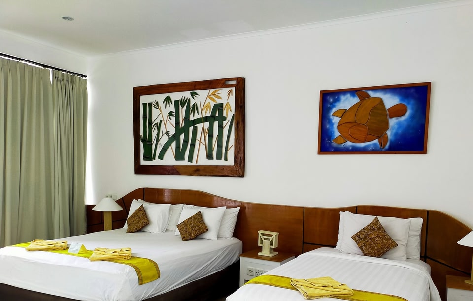 The Trawangan Resort sul mare, a Gili Trawangan, è a 4 minuti di auto da Punto Panoramico Collina di Gili Trawangan e 6 minuti da Terminal dei Traghetti di Gili Trawangan. Questo resort sulla spiaggia si trova vicino ai seguenti luoghi d'interesse: Sire Beach Golf Club e Porto di Bangsal. Rilassati in una delle 2 piscine all'aperto e scegli tra i servizi ricreativi disponibili, che includono un servizio di noleggio biciclette. Questo resort dispone, inoltre, di il Wi-Fi gratuito, servizi di concierge e un servizio babysitter a pagamento. Puoi mangiare da Aksata Beach Restaurant, accogliente ristorante sulla spiaggia fornito di bar/lounge e con vista sul mare. O, se non ti va di uscire, puoi sfruttare il servizio in camera con orario limitato. Dissetati con il tuo drink preferito! Presso questa struttura troverai un bar a bordo piscina. La colazione completa è disponibile a pagamento tutti i giorni dalle ore 07:00 alle ore 11:00. Potrai usufruire di un pratico servizio di lavanderia e lavaggio a secco, un servizio lavanderia e una cassetta di sicurezza presso la reception. Potrai usufruire di una navetta da e per l'aeroporto su richiesta a pagamento; inoltre, in loco troverai il un parcheggio con posti limitati. Rilassati in una delle 23 camere con stile personalizzato della struttura, complete di minibar e Smart TV. Riposati su un comodo letto con materasso Select Comfort e biancheria da letto di alta qualità. Le camere sono dotate di balcone o patio. Il Wi-Fi gratuito ti consente di restare in contatto con il mondo, mentre la TV con canali in digitale è l'ideale per concedersi un po' di svago. I bagni con vasca e doccia separate dispongono di vasca idromassaggio e soffione a pioggia.