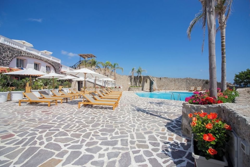 Il Pagoda Lifestyle Hotel sorge su una baia privata a pochi passi dal porto di Ischia. La struttura ha due discese verso il mare su una piattaforma piatta di roccia, attrezzata con lettini e ombrelloni. License number: IT063037A1J6JOVFLM