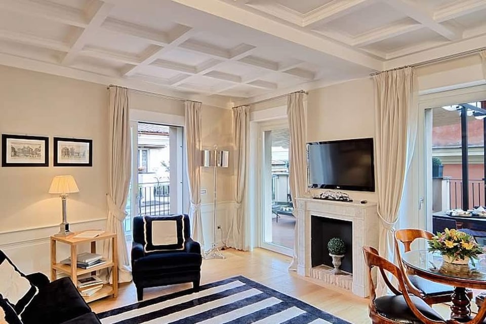 Le eleganti camere e suite di lusso del Trevi Palace Luxury Inn si trovano a soli 50 metri dalla fontana di Trevi a Roma. License number: IT058091B4D9Y6UX57