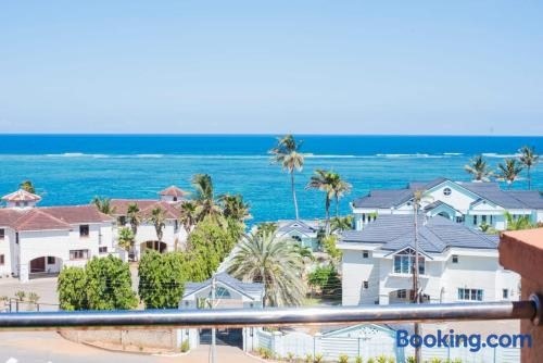 Beachfront mini studio with swimming pool se află în Mombasa și oferă WiFi gratuit, o piscină privată și parcare privată gratuită. Acest apartament se află la 3,3 km de Nyali Golf Couse și la 3,7 km de Mamba Village Crocodile Farm.
