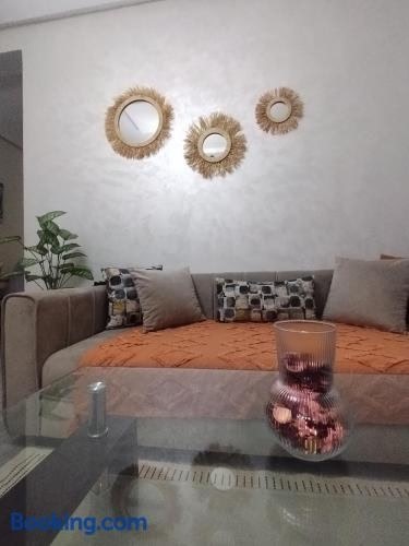 Appartement luxueux à louer is set in Marrakech, 3.9 km from Marrakesh Train Station, 5.7 km from Le Jardin Secret, as well as 5.7 km from Mouassine Museum. The air-conditioned accommodation is 3.