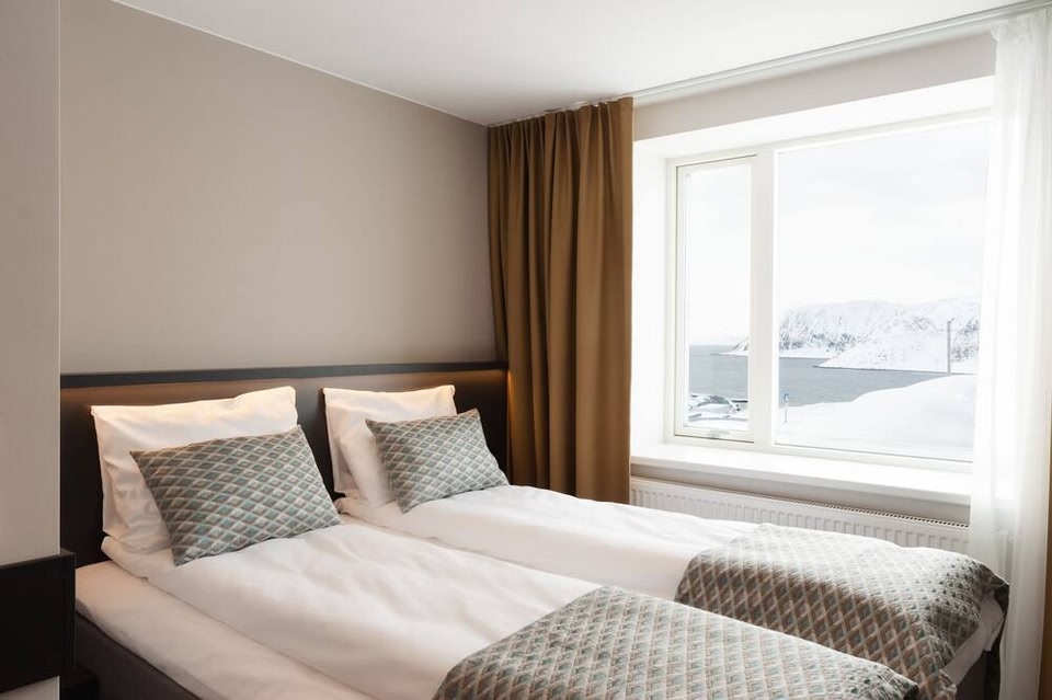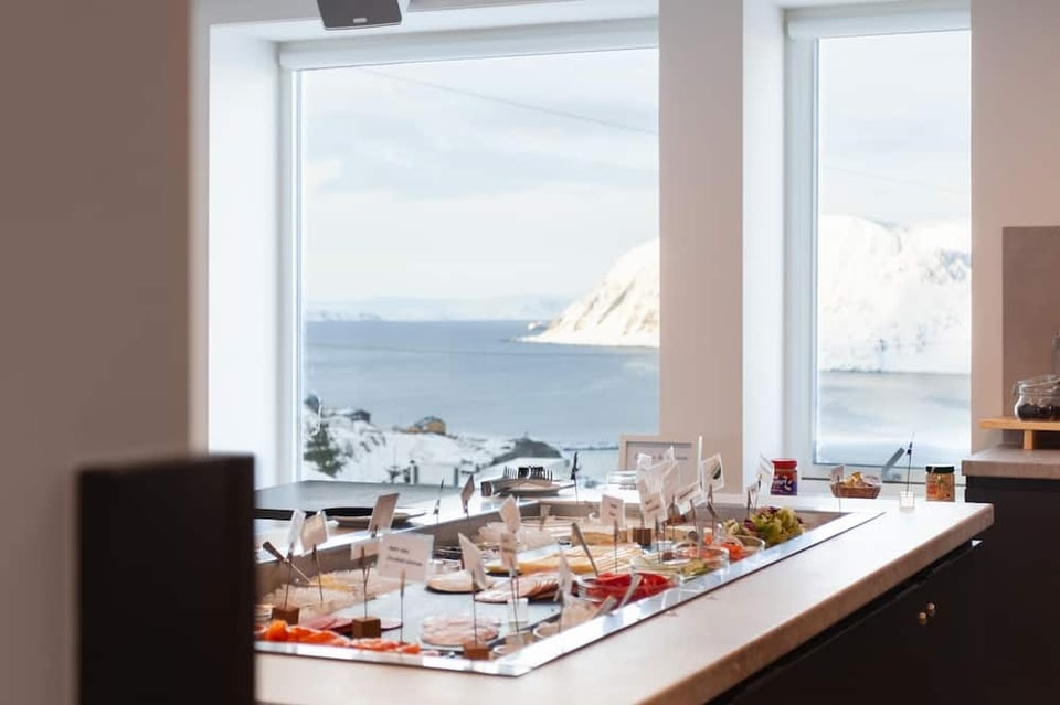 Posizionato a Honningsvåg, a 32 km da Capo Nord, The View mette a disposizione un centro fitness, un parcheggio privato gratuito, una sala comune e una terrazza. L'hotel presenta una piscina coperta, una sauna e un servizio navetta gratuito.