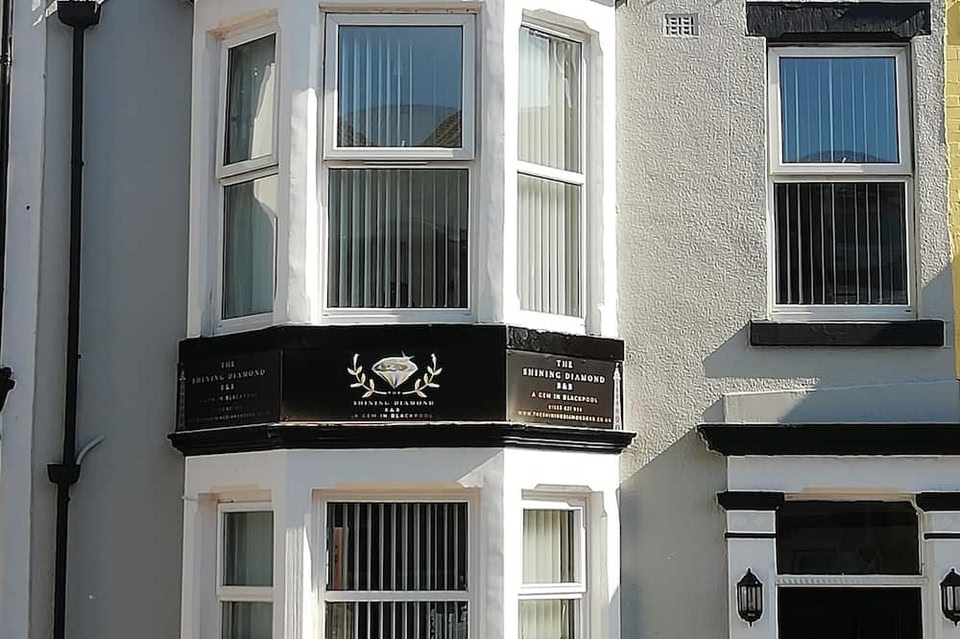 The Shining Diamond se află în Blackpool, la 700 m de centru și la 7 minute de mers pe jos de Plaja Centrală, și pune la dispoziție unități de cazare cu dotări precum WiFi gratuit și televizor cu ecran plat.
