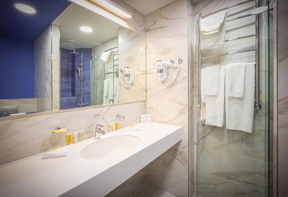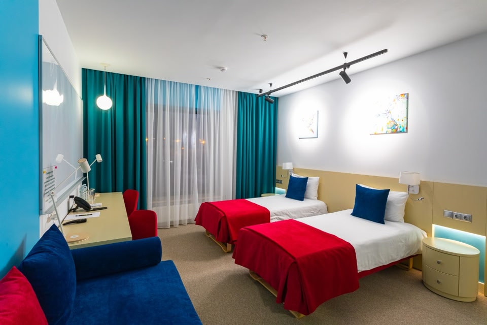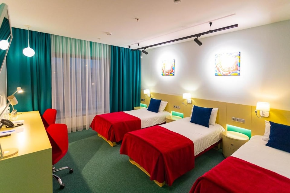 Location Irina Viner's Palace Hotel is located in Moscow, 5 km from the city center. Within walking distance are the Moskva River Embankment, jogging and cycling paths, open areas for outdoor sports, playgrounds, a cable car, the largest rock climbing center, a thermal and health-improving aqua complex, the Luzhniki Big and Small sports arenas, the Medical University named after Sechenov, Novodevichiy Convent, high-rise building of Moscow State University named after M.V. Lomonosov. The nearest metro stations are Sportivnaya and Luzhniki. Irina Viner's Palace Hotel is famous for its architecture — the unique shape of the roof is inspired by a fluttering gymnastic ribbon. The building received the international award MIPIM Awards 2020 and the statuette Best Sports Facility at the National Sports Award of the Ministry of Sports of the Russian Federation in 2019. The Kremlin and the Cathedral of Christ the Savior are a few metro stops away. Nearby are also the Moscow City business center and the Expocentre Fairgrounds.At the hotel The hotel is suitable for leisure and business trips.