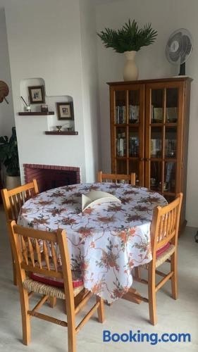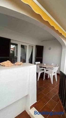 Situato a 700 metri da Cala en Porter a Cala'n Porter, l’alloggio apartamento con encanto en residencial con piscina prevede un balcone, un giardino e la piscina all'aperto.