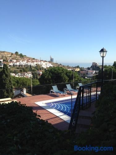 Apartamento-Estudio en Villa con Piscina prevede un alloggio con piscina all’aperto, giardino e terrazza a Málaga e dispone di WiFi gratuito e vista sulla città.