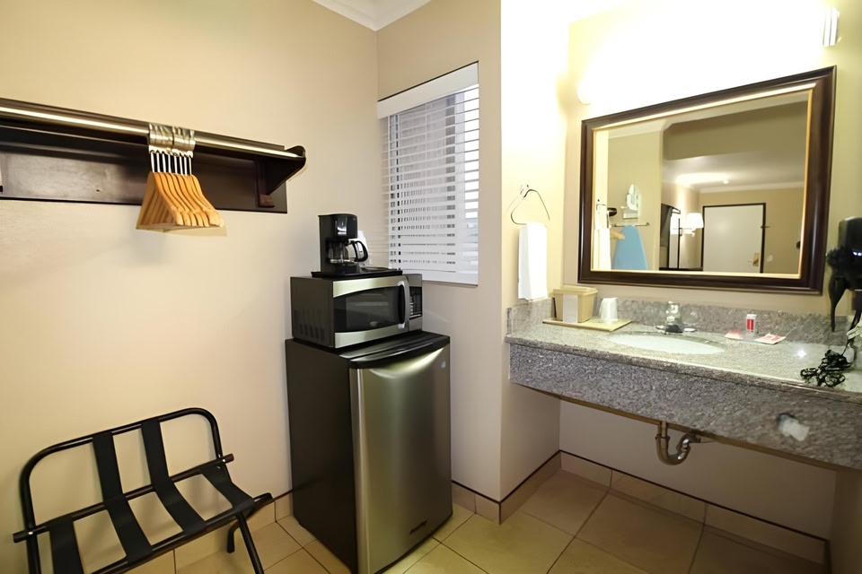 A Fallbrook, Econo Lodge Inn & Suites Fallbrook Downtown nel quartiere degli affari gode di una posizione strategica, a 4 minuti a piedi c'è Grand Tradition Estate and Gardens e in meno di 5 minuti di auto puoi arrivare a Fallbrook Pioneer Odd Fellows Cemetery. Questo hotel si trova a 26,5 km da Pechanga Resort & Casino e 24 km da Old Town Temecula Community Theater. Avrai a disposizione utili servizi come il Wi-Fi gratuito, una TV nelle aree comuni e un distributore automatico. Potrai usufruire di un business center, quotidiani gratuiti nella hall e una reception aperta 24 ore su 24. Il un parcheggio gratuito è disponibile in loco. Rilassati in una delle 36 camere della struttura, complete di frigorifero e microonde. La TV a schermo piatto da 37 pollici con canali via satellite è l'ideale per concedersi un po' di svago, mentre il Wi-Fi gratuito ti permette di restare in contatto con il mondo. Il bagno in camera dispone di combinazione doccia/vasca, set di cortesia gratuiti e asciugacapelli. I comfort includono scrivanie, accessori per la preparazione di caffè/tè e telefoni con chiamate urbane gratuite.