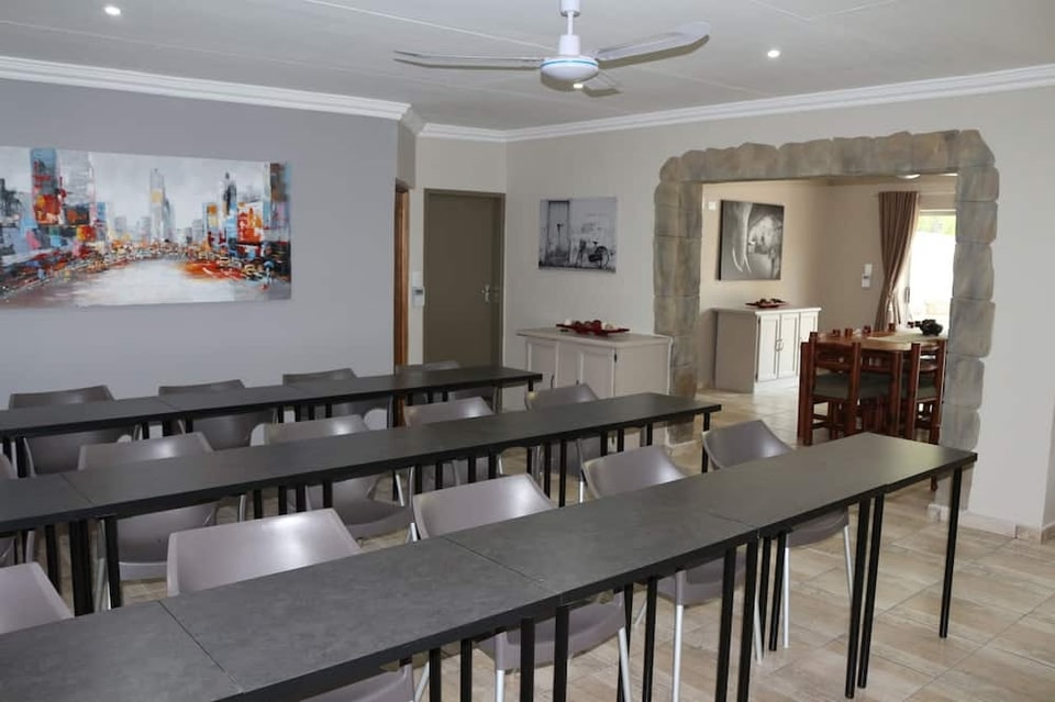 Non avrai difficoltà a muoverti dentro Mbombela da Hummingbirds Nest Guesthouse, infatti sarai a circa 5 minuti di auto da Busamed Lowveld Private Hospital e da Matumi Golf Course. Questa guest house si trova a 2,8 km da Nelmed Medicross Medical Centre e 3,1 km da Scuola Superiore di Nelspruit. Scopri i molti servizi ricreativi a disposizione, tra cui una piscina all'aperto e un giardino da dove ammirare il paesaggio. Questa guest house offre, inoltre, il Wi-Fi gratuito e un'area barbecue. Presso una guest house è disponibile il servizio in camera. La reception è aperta in orario limitato. Stai pianificando un evento a Mbombela? Presso una guest house avrai a disposizione 45 metri quadrati di spazio con un'area per conferenze. Il un parcheggio gratuito è disponibile in loco. Rilassati in una delle 8 camere della struttura, complete di aria condizionata e TV a schermo piatto. Potrai preparare i tuoi pasti nella cucina condivisa/in comune. Il Wi-Fi gratuito ti consente di restare in contatto con il mondo, mentre la TV con canali via satellite è l'ideale per concedersi un po' di svago. Il bagno in camera dispone di doccia, set di cortesia gratuiti e asciugacapelli.