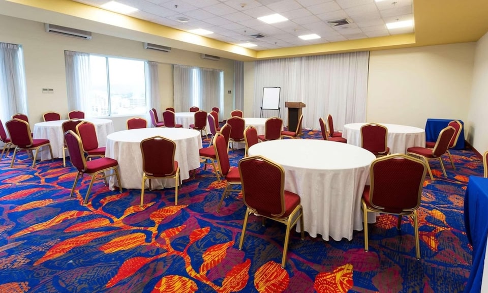 Sarai proprio al centro di Port of Spain, se deciderai di soggiornare in Radisson Hotel Trinidad, che si trova a meno di un quarto d'ora a piedi da Brian Lara Promenade (passeggio pubblico) e da Cattedrale della Trinità. Questo resort per famiglie dista 2,3 km da Queen's Park Savanah (parco) e 2,6 km da Movietowne. Grazie ad un'ampia gamma di servizi ricreativi, che includono una piscina all'aperto e una palestra aperta giorno e notte, il divertimento è assicurato. Questo resort propone, inoltre, il Wi-Fi gratuito, servizi di concierge e negozi di articoli da regalo/edicole. Gli ospiti potranno spostarsi con la navetta gratuita che opera all'interno di 2 chilometri. Puoi gustare gustose specialità da Olympia, uno dei 2 ristoranti ristoranti presso un resort, specializzato in cucina internazionale; oppure, resta in stanza e approfittarne per rilassarti, visto che c'è un servizio in camera 24 ore su 24. Altrimenti puoi assaggiare gli stuzzichini preparati al bar/caffetteria. Rilassati con il tuo drink preferito presso un bar/lounge e un bar a bordo piscina. La colazione a buffet è disponibile a pagamento tutti i giorni dalle ore 06:30 alle ore 10:30. Potrai usufruire di un business center aperto 24 ore su 24, check-out veloce e quotidiani gratuiti nella hall. Stai pianificando un evento a Port of Spain? Presso un resort avrai a disposizione 279 metri quadrati di spazio con un centro congressi e 6 sale riunioni. È possibile usufruire gratuitamente di una navetta per il terminal dei traghetti 24 ore su 24; inoltre, in loco è disponibile un un parcheggio gratuito. Soggiorna in una delle 243 camere della struttura, complete di TV LCD. La connessione Internet inclusa, wireless e via cavo, ti consente di restare in contatto con il mondo, mentre la TV con canali in digitale è l'ideale per concedersi un po' di svago. Il bagno in camera dispone di combinazione doccia/vasca, set di cortesia gratuiti e asciugacapelli. I comfort includono telefoni, casseforti e scrivanie.