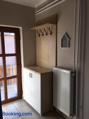 Vass Bor Vendégház si trova a Kiskőrös e offre una terrazza. Questo appartamento con aria condizionata comprende 1 camera da letto, un soggiorno, una cucina con utensili, frigorifero e macchina da caffè, e 1 bagno con doccia e vasca da bagno.