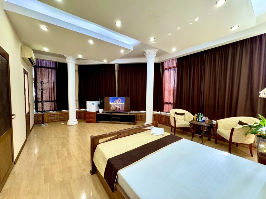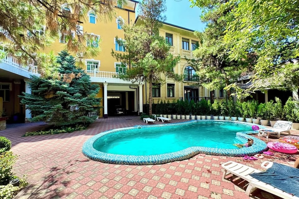 A Tashkent (Distretto di Yakkasaroy), RETRO PALACE si trova a soli 5 minuti di auto da Parco della Pace di Seattle e da Museo di Belle Arti dell'Uzbekistan. Questo aparthotel di lusso dista 1,2 km da Museo delle Arti Applicate e 2,1 km da Città del Ghiaccio. Scopri i molti servizi ricreativi a disposizione, tra cui una piscina all'aperto e un giardino da dove ammirare il paesaggio. In questo aparthotel potrai inoltre contare su il Wi-Fi gratuito, una sala ricevimenti e un distributore automatico. Presso un aparthotel è disponibile il servizio in camera 24 ore su 24. La colazione continentale viene servita gratuitamente tutti i giorni dalle ore 07:00 alle ore 10:00. Potrai usufruire di una reception aperta 24 ore su 24, un servizio lavanderia e bancomat/servizi bancari. Il un parcheggio gratuito è disponibile in loco. Scegli una delle 53 camere della struttura e approfitta di aria condizionata e cucina. Grazie ad un comodo letto con copriletto in piuma e biancheria da letto di alta qualità dormirai sonni tranquilli. La TV a schermo piatto da 32 pollici dispone di canali via cavo. I comfort includono telefoni, scrivanie e bollitori elettrici.