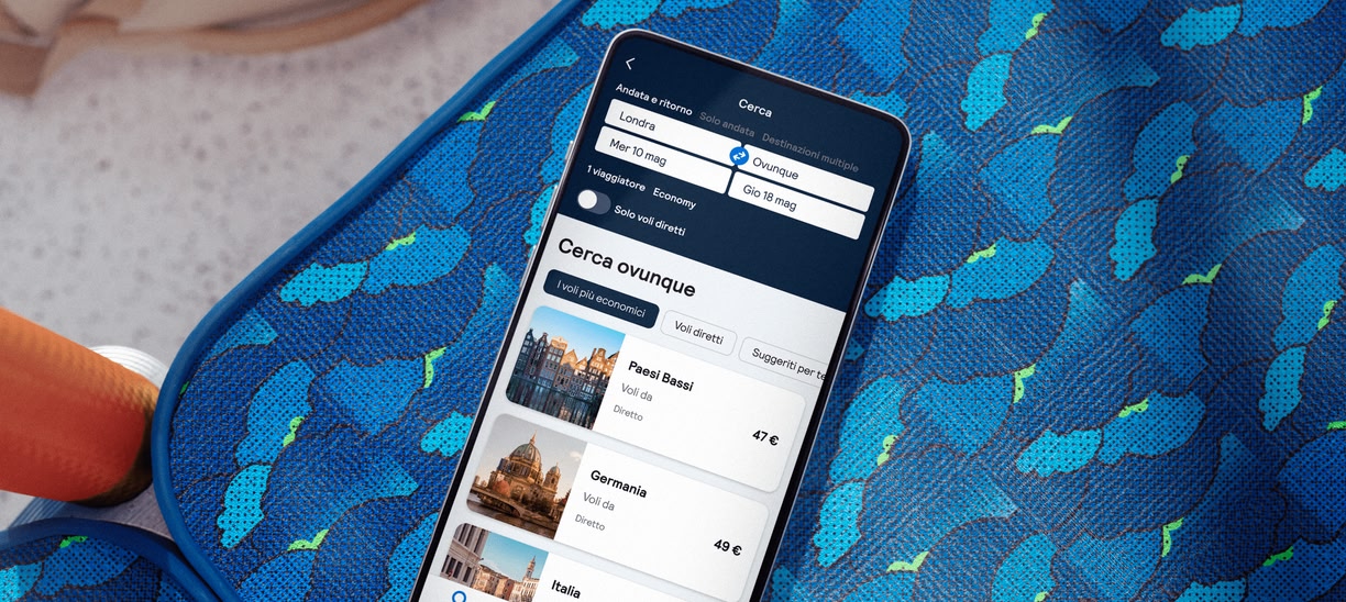 È la funzionalità che rivoluziona la ricerca: invece di scegliere una destinazione, selezioni semplicemente "Ovunque". Ti mostreremo tutti i luoghi in cui puoi volare dall'aeroporto che hai scelto, ordinati per prezzo in modo da poter individuare rapidamente le offerte.